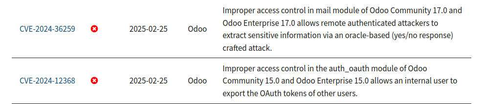To Odoo’s credit, the company addresses security issues with regular security updates across both Community and Enterprise versions and systematic patching of reported vulnerabilities.